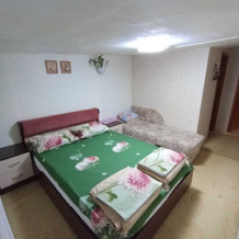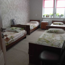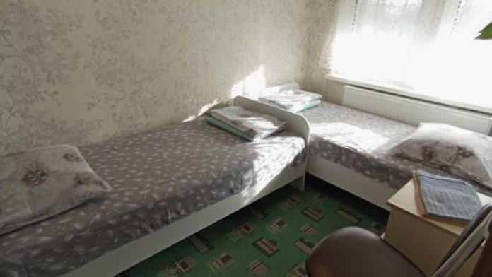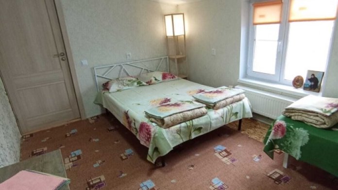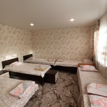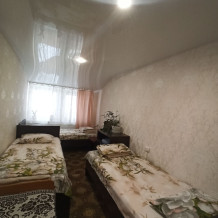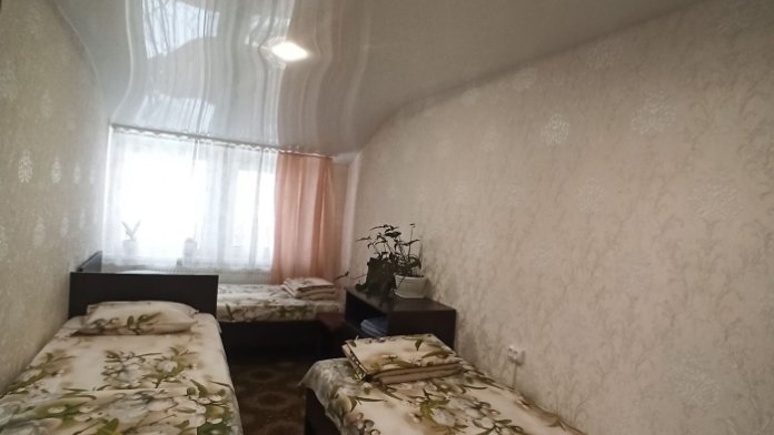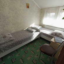 В номере двуспальная кровать и односпальная, либо 3 односпальных кровати. Санузел на этаже.