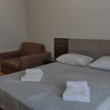 «Комфорт» 2-й корпус располагается на 1-2-3-4 этажах, вид во двор и на город. Сплит-система, мини-холодильник, LED телевизор. Удобные кровати: двуспальная кровать и двуспальный диван(основное размещение) и раскладная кровать(дополнительное размещение), прикроватные тумбочки, столик с зеркалом, шкаф. Санузел в номере.
