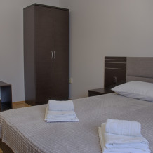 «Семейный» 2-х комнатный номер 2-й корпус располагается на 2−3 этажах, вид во двор и на город. Две проходные комнаты. Сплит-система, холодильник, 2 LED телевизора. Удобные кровати: двуспальная кровать и двуспальный диван (основное размещение) и двуспальный диван (дополнительное размещение), прикроватные тумбочки, столик с зеркалом, шкаф. Санузел в номере.