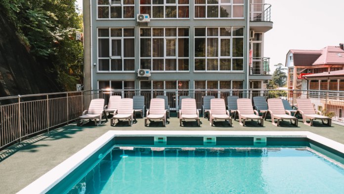 Для автовладельцев предусмотрена частная парковка (платно). На территории расположен стационарный бассейн с подогревом и детской зоной и шезлонгами. Во дворе есть столики под навесом, скамейки среди различных насаждений. Не большой фонтан. Работает круглосуточная стойка регистрации, где вежливый персонал всегда рад помочь по любым вопросам проживания. Влажная уборка в номерах производится каждый день. Смена полотенец, а также обновление туалетных принадлежностей производится раз в 3 дня. Смена белья раз в 5 дней.