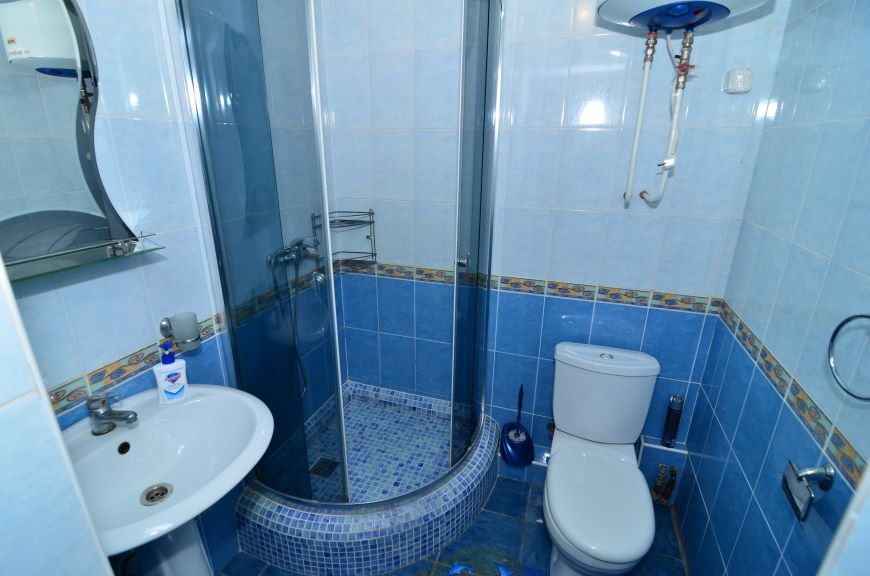 Санузел оборудован современной сантехникой с душевой кабиной. Теплую воду обеспечивает бойлер. В каждом номере есть также фен, комплект полотенец, мыльные принадлежности.