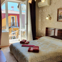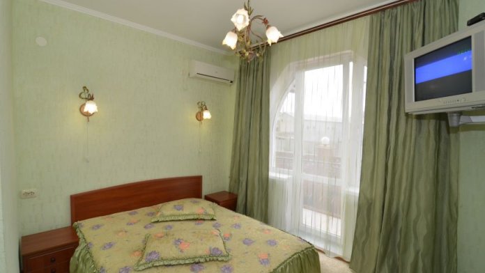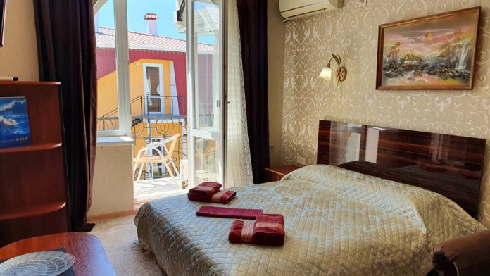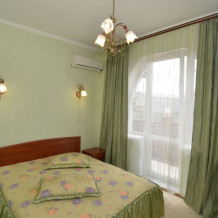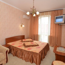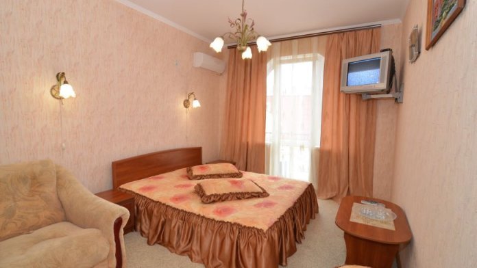 В номере: кровать двуспальная или 2 односпальные, прикроватные тумбочки, мягкое кресло, столик, 2 стула, шкафчик, комплект полотенец, мыльные принадлежности, бойлер, ТВ 95 каналов, смена белья 1 раз в неделю.