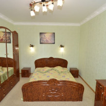 В номере: кровать двуспальная и 2 односпальные, прикроватные тумбочки, мягкое кресло, столик, 2 стула, шкафчик, комплект полотенец, мыльные принадлежности, бойлер, ТВ 95 каналов, смена белья 1 раз в неделю.