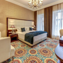 Интерьер этих просторных номеров выполнен в традиционном сочетании пастельных тонов и оттенков индиго. Площадь номера составляет 24 кв.м., что позволяет разместить дополнительную кровать для ребенка или взрослого человека. Гости отеля могут насладиться видом на исторический центр города и Невский проспект или же на тихий внутренний дворик.