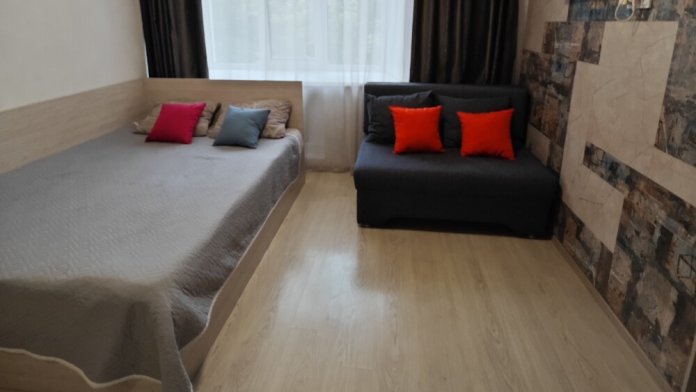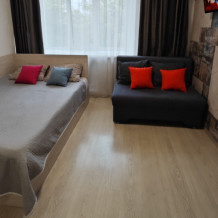 Студия предназначена для проживания от 2 до 4 человек. Есть все необходимое для комфортного проживания: Телевизор,бесплатный Wi-fi, фен, утюг, кондиционер. Мини-кухня оснащена всей необходимой посудой. Всегда чистое постельное белье и полотенца. Стиральная машина и микроволновая печь (в общем коридоре на 5 студий).