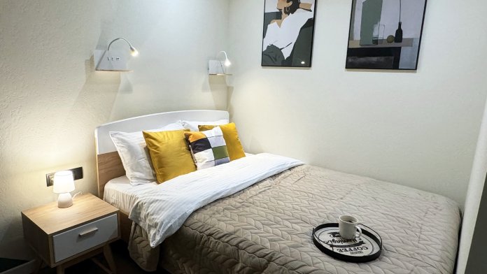 - мебель: вместительные шкафы, удобная кровать с ортопедическим матрасом, мягкий раскладывающийся диван;
