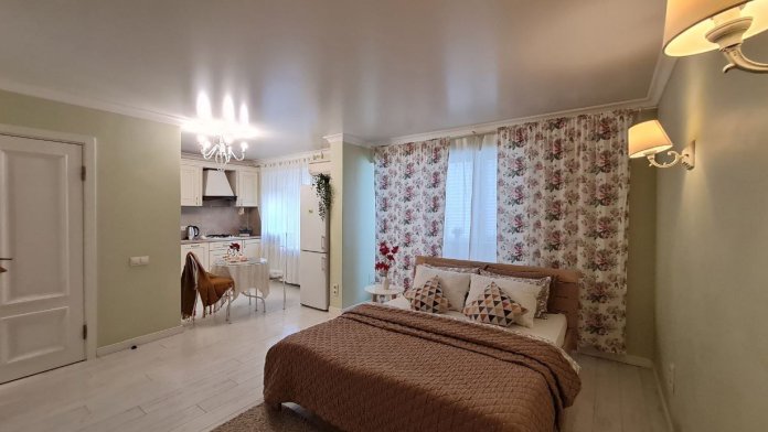 Дизайн квартиры выполнен в стиле Прованс, исключительно светлые тона, много света и воздуха.