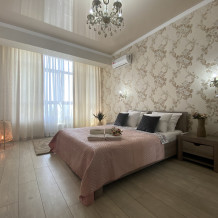 В квартире большой зал со спальным гарнитуром и просторная кухня с удобным раскладным диваном.