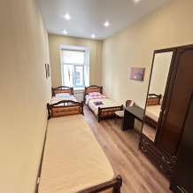 Комната оснащена тремя односпальными кроватями 140х200, письменным столом, шкафом для одежды. Размещение до трех человек.