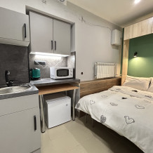 Пять студий со своим санузлом. Полное оснащение бытовой техникой, посудой, постельные и туалетные принадлежности