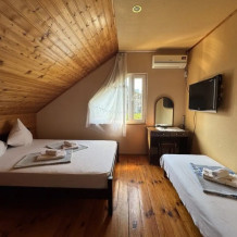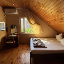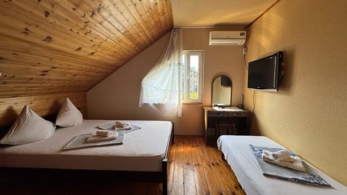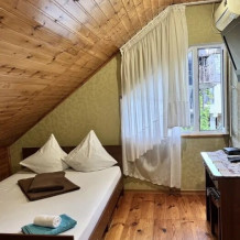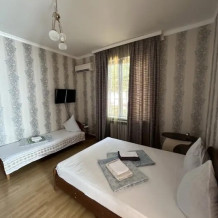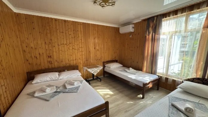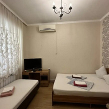 Все номера оборудованы телевизорами, кондиционерами. Есть категория Эконом (санузел общий) и Стандарт (санузел собственный).