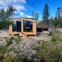 Тёплый дом с панорамными окнами. Просыпайтесь, завтракайте, обедайте и ужинайте с прекрасным видом на лес.