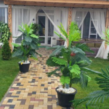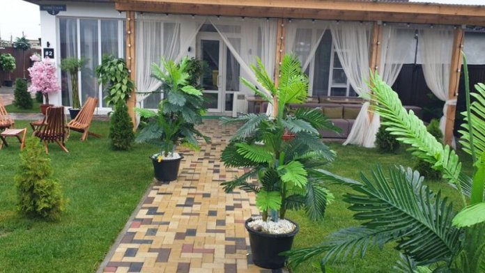 Во дворе 6 диванов уличных и 2 стола, так же кондиционер уличный для комфортного провождения времени на улице под перголой.