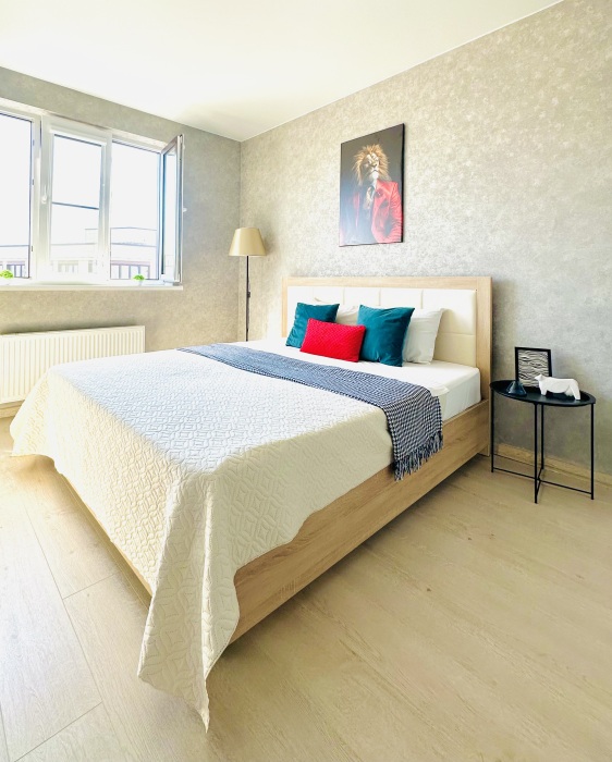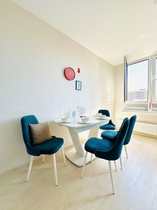 Уютная однокомнатная квартира в ЖК «Мега-Победа 2». Большой двор, парковка у дома, детская и спортивная площадки. Рядом: ТЦ «Мега«Адыгея, Ашан, Леруа Мерлен, Метро, Унидом, Столплит, автосалоны и аквапарк «Ниагара», аэротруба «Летяга».