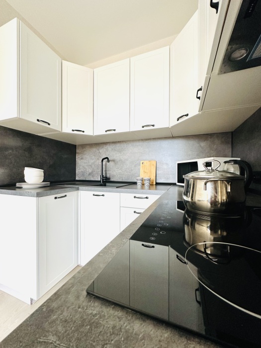 - кухня с необходимой техникой, посудой, столовыми приборами;