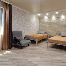 Две комнаты-Спальная и кухня-гостинная, спальные места — 6 шт. (двухспальная и односпальная кровати, диван. раскладное кресло);