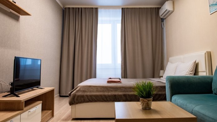 Удобства: постельное бельё и полотенца, белые халаты, средства гигиены, чай, сахар, кофе – бесплатно, полностью оборудованная кухня, интернет и Смарт ТВ.
