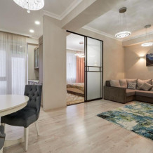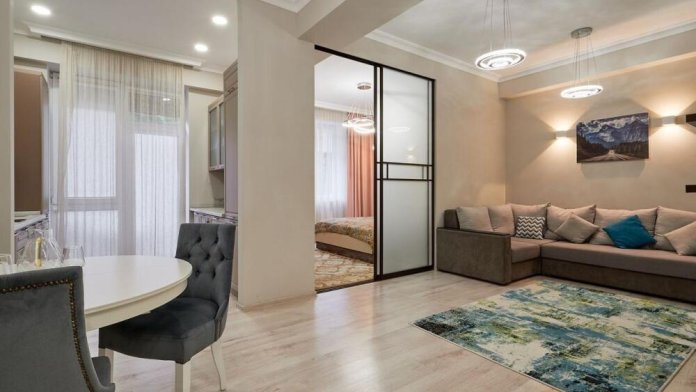 Интерьер выполнен в светлых тонах, что создает атмосферу спокойствия и гармонии. Мебель подобрана с особым вниманием к деталям: удобная кровать, современный шкаф-купе и функциональная кухня создают комфорт и удобство для проживания. Особое внимание уделено декору: картины местных художников и декоративные элементы добавляют шарм и индивидуальность пространству.