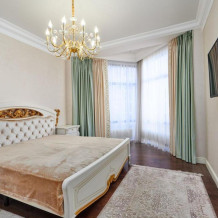 Интерьер выполнен в светлых оттенках, что создает ощущение простора и свободы. Каждая деталь продумана до мелочей: удобная мягкая мебель, дизайнерская отделка стен и потолков, качественная бытовая техника. Квартира оборудована всей необходимой техникой для комфортного проживания, включая кондиционер, Wi-Fi, телевизор с большим экраном и современную кухню.