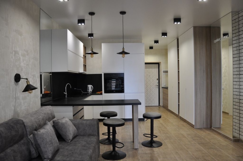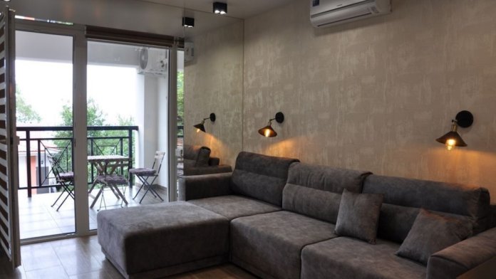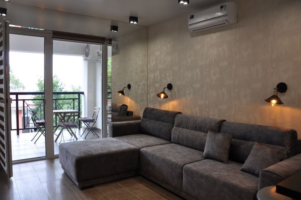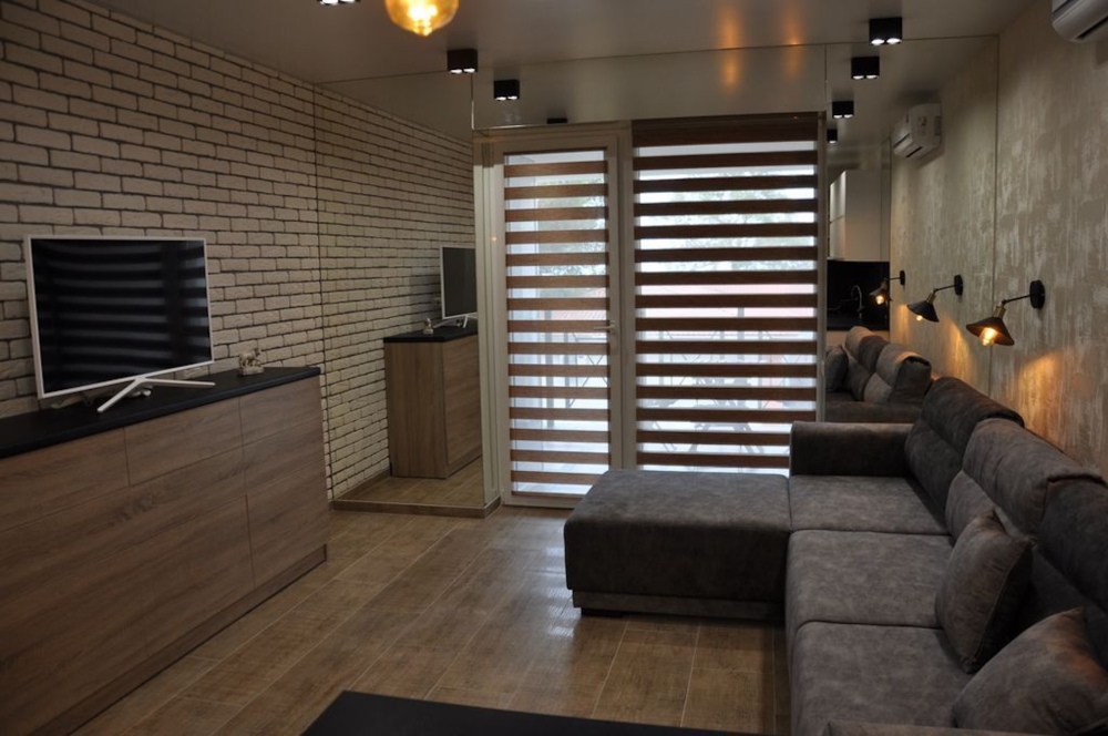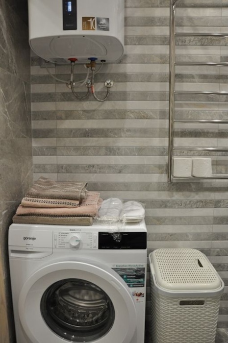 Апартаменты оборудованы всем необходимым для комфортного проживания 2-4 человек, кухней, санузлом, огромный раскладной диван для ежедневного сна со спальным местом 2800/2000. Апартаменты оборудованы бытовой техникой и кухонными принадлежностями, есть все необходимое для комфортного проживания и отдыха.