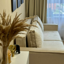 Квартира оборудована всем необходимым для комфортного проживания 2-4 человек. Двуспальная кровать с ортопедическим матрасом и двуспальный диван. Подушки и одеяла гипоаллергенные. Качественное чистое постельное белье и полотенца для всех гостей.