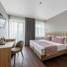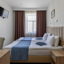 Уютные комнаты с двумя раздельными или двумя сдвинутыми кроватями. Площадь комнаты 16 м2 -18 м2. Вид из окон на Невский проспект или внутренний двор. В каждой комнате, специально для Вашего удобного проживания в нашем отеле имеется: холодильник, телевизор, кондиционер, тумбочка, стулья, шкаф, сейф, тумба для багажа и бесплатный доступ к сети Wi-Fi.
