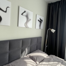 Квартира оборудована всем необходимым для комфортного проживания 2-4 человек. Двуспальная кровать с ортопедическим матрасом и двуспальный диван. Подушки и одеяла гипоаллергенные. Качественное чистое постельное белье и полотенца для всех гостей.