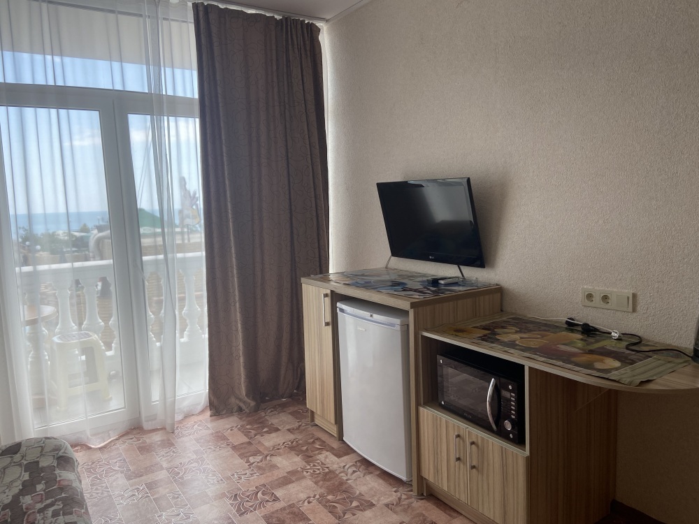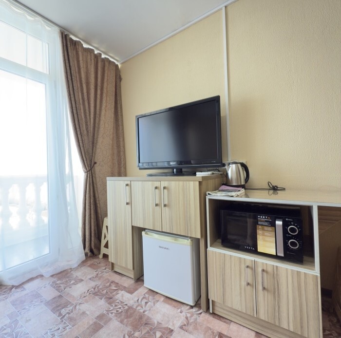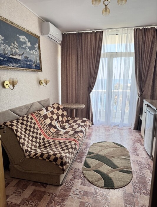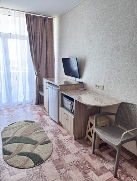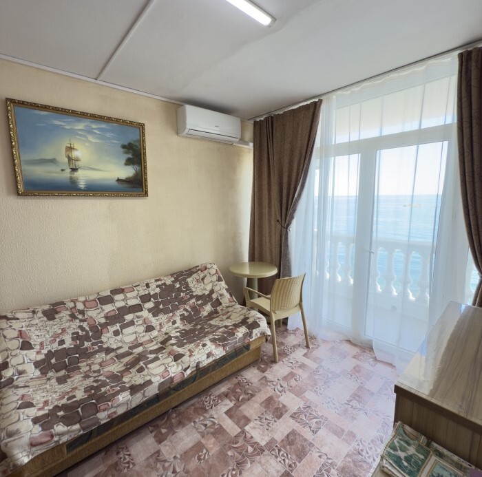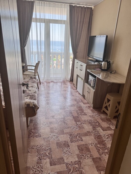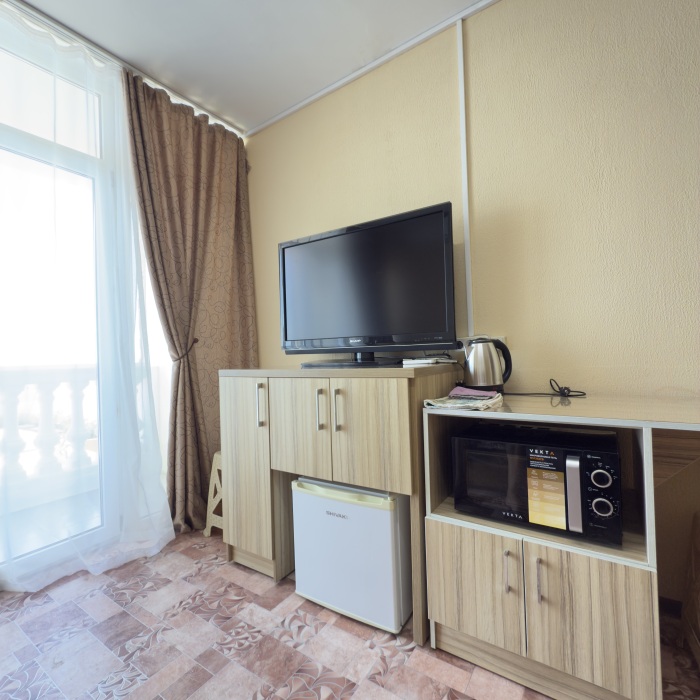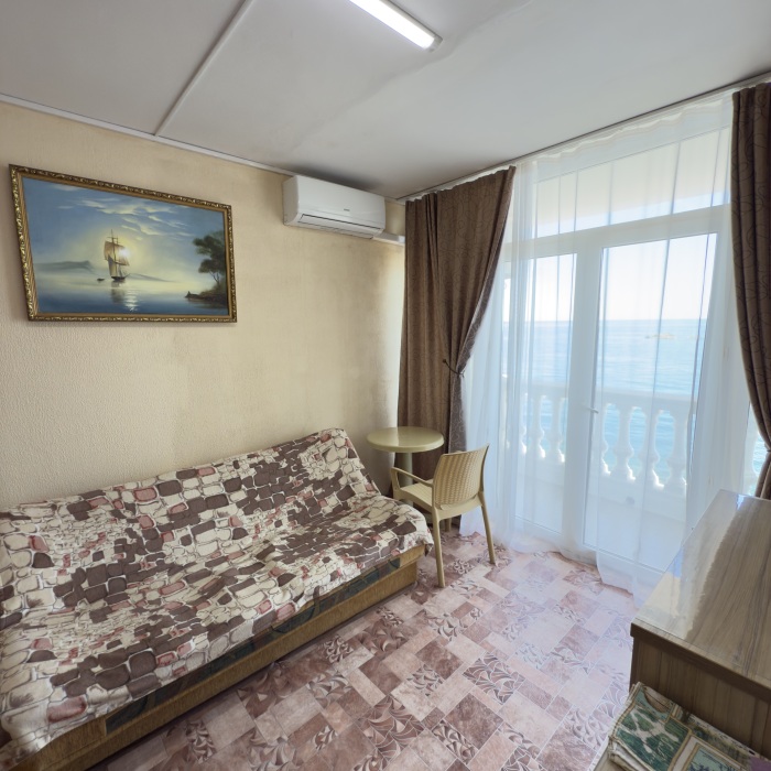 Погрузитесь в атмосферу безмятежности и комфорта в нашем Полулюксе с завораживающим видом на море. Проснитесь под ласковый шум прибоя и насладитесь первым лучом солнца, играющим на морской глади, прямо из окон вашего просторного номера. Этот полулюкс - идеальное сочетание элегантности и функциональности, созданное для Вашего незабываемого отдыха в Крыму.