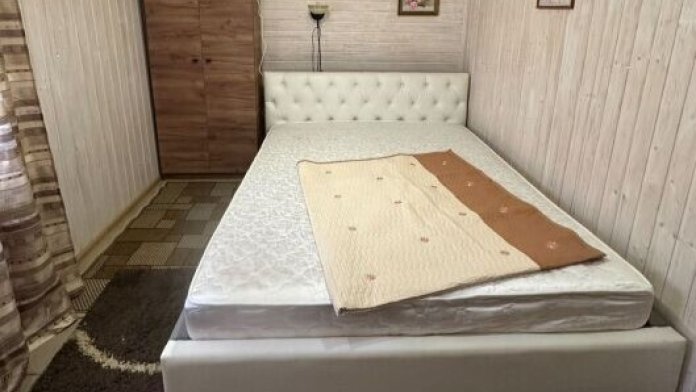 В домике кондиционер, евро кровать, стол, комод, фен, телевизор. В санузле бойлер, на кухне микроволновка, холодильник, плита, мультиварка, чайник, тостер, вентилятор, посуда. Предоставляется постельное белье и полотенца.