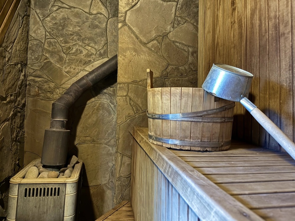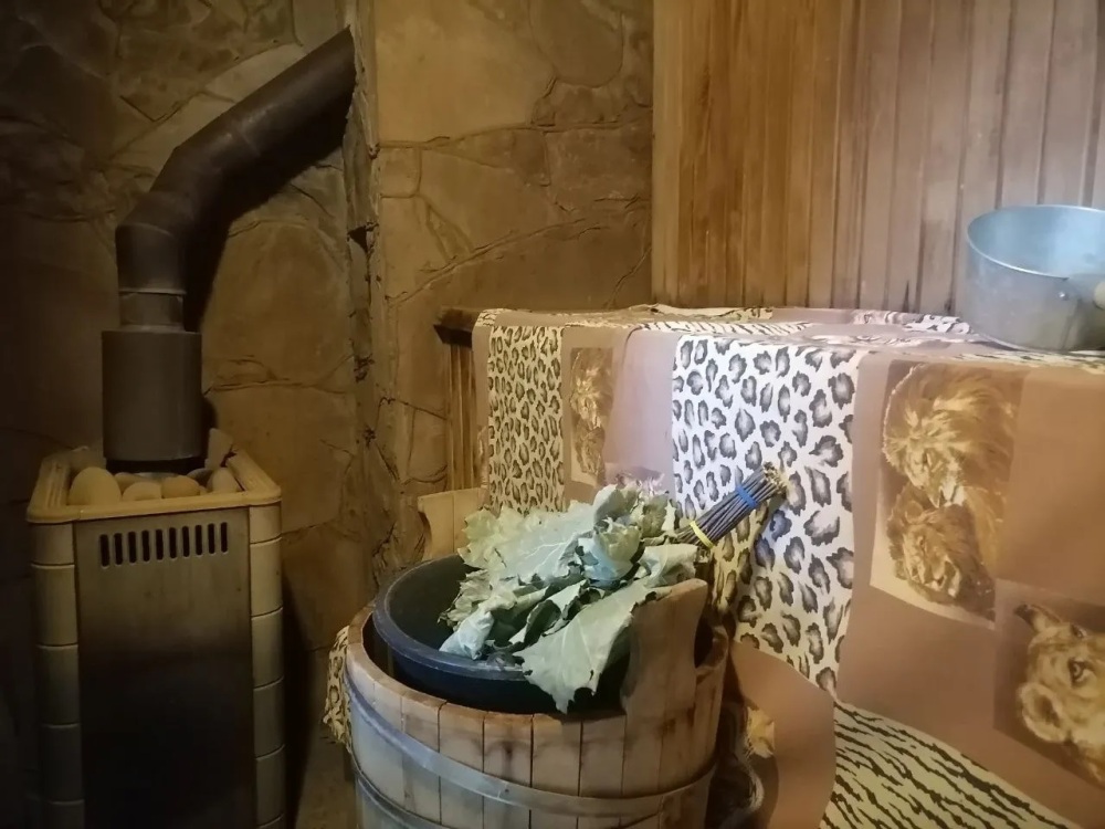 - настоящая баня на дровах с бассейном;
