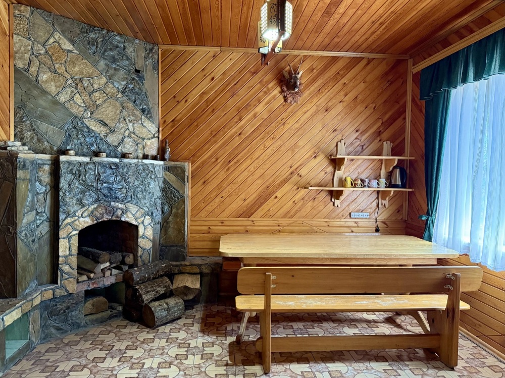 Для гостей четырёх комнат доступен общий зал, где можно: — разогреть еду в микроволновке, — хранить продукты в холодильнике, — устроиться за обеденным столом с видом на горы, — посмотреть телевизор вечером всей семьёй.