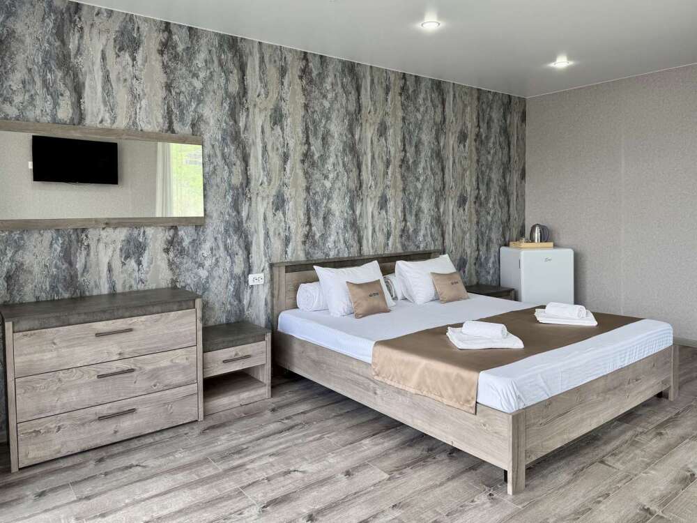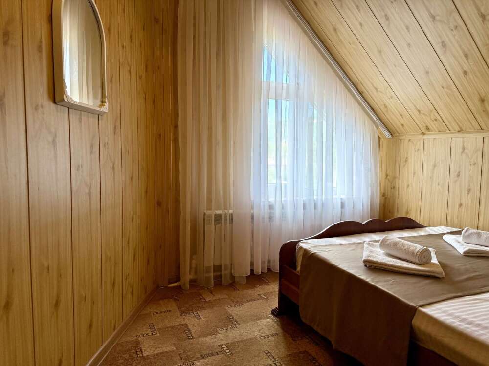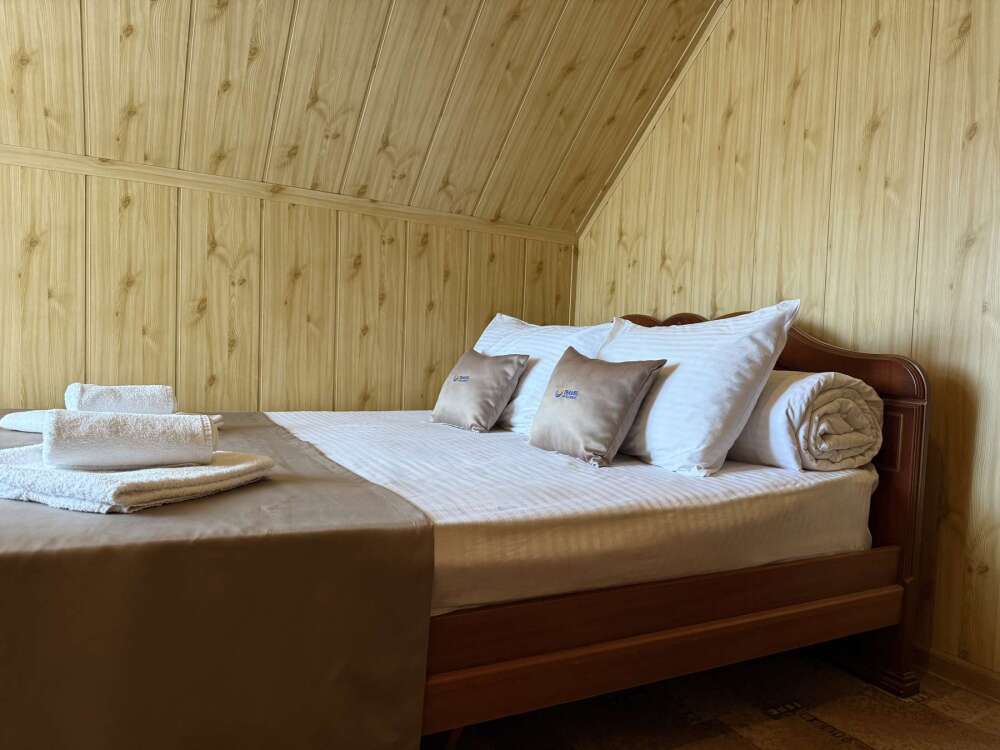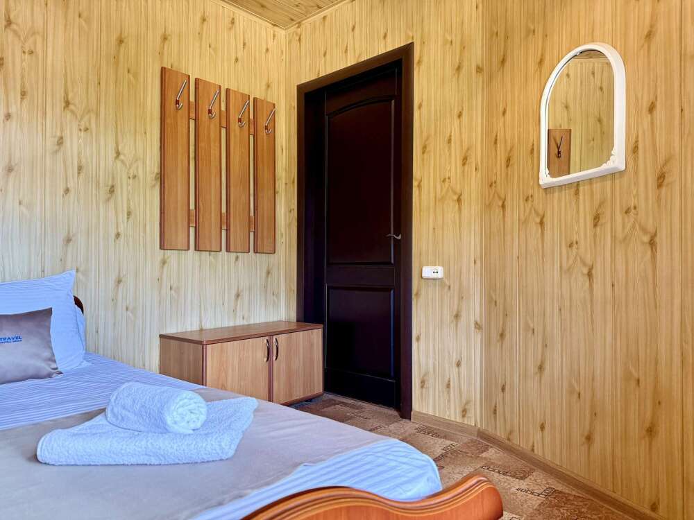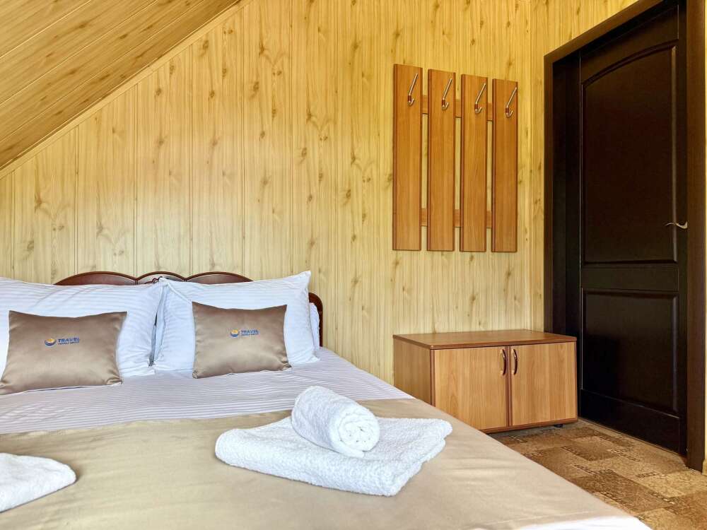 Комната с двуспальной кроватью, где после активного дня на природе вы окунётесь в тишину и отдых.