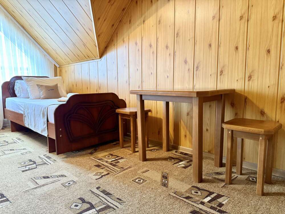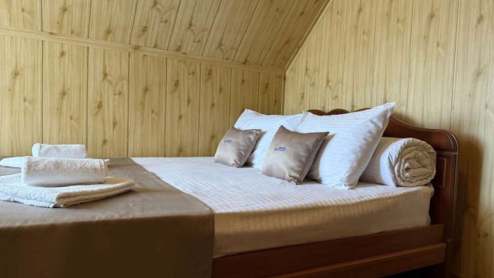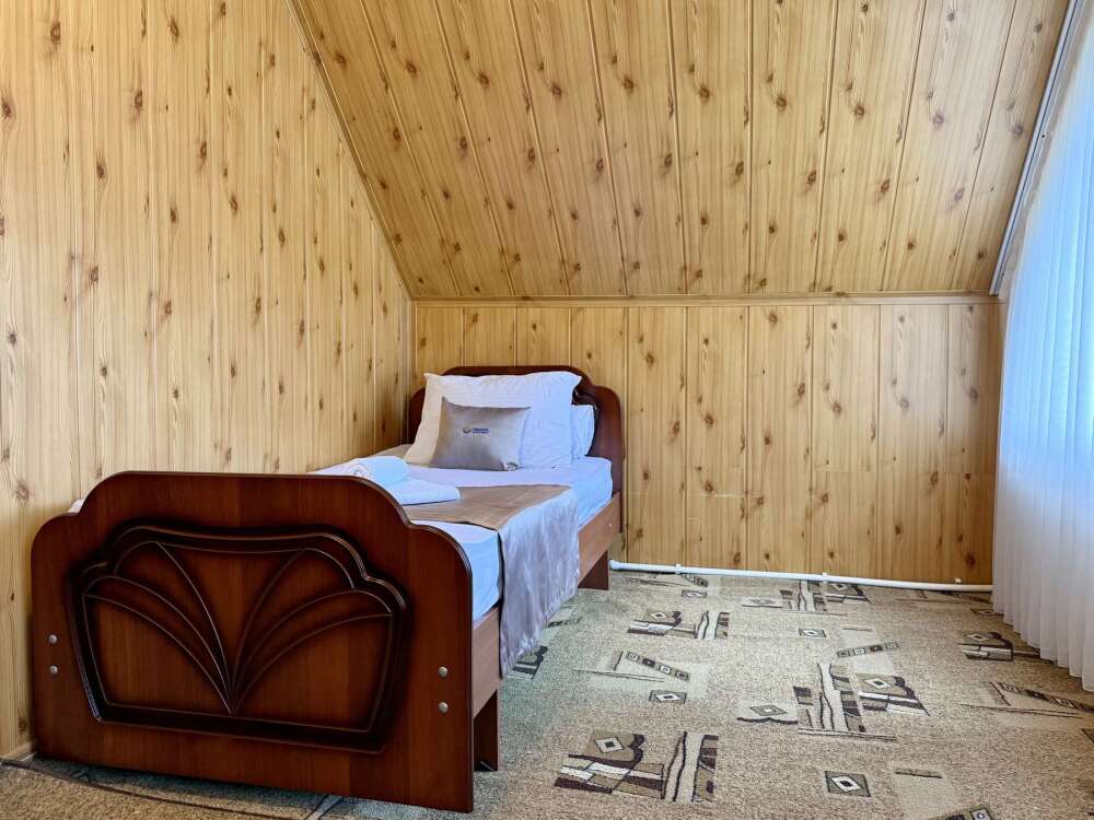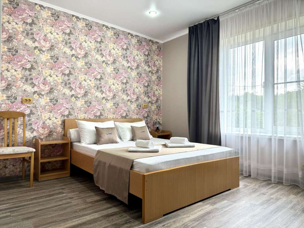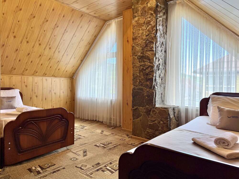 Комната с двуспальной кроватью, где после активного дня на природе вы окунётесь в тишину и отдых.