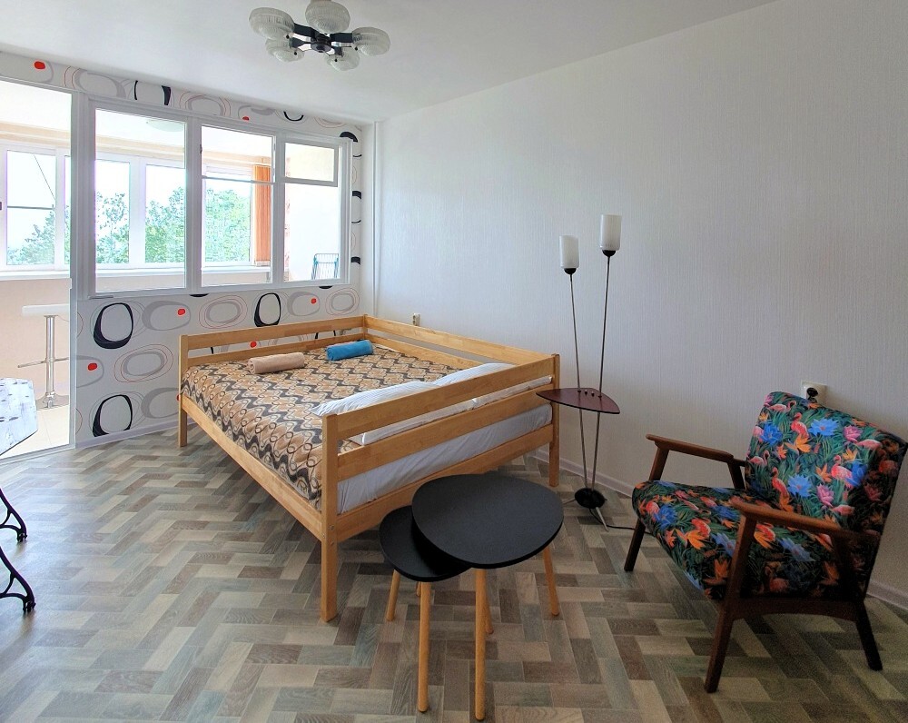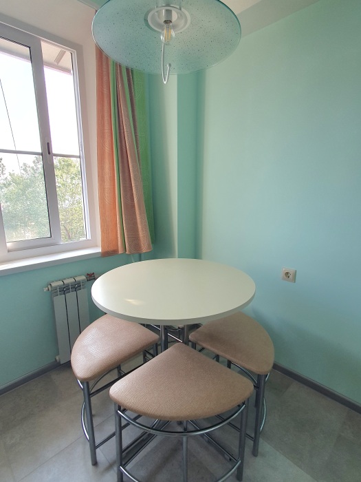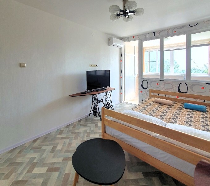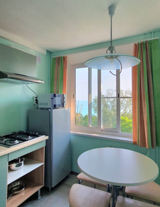 Квартира расположена в тихом, зеленом микрорайоне Приморье, или Благодать, который выбирали для отдыха еще с имперских времен, ведь он характеризуется прекрасным микроклиматом за счет близости реликтового леса, с одной стороны и моря, с другой стороны. Район сохранил очарование спокойного спального района курорта с неспешным ритмом жизни и уютной планировкой.