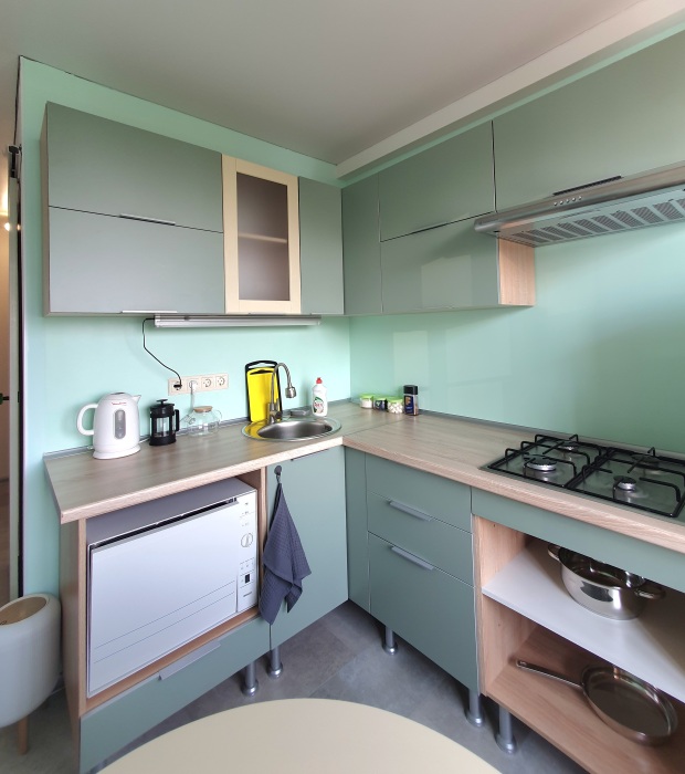 - чистая кухня, оснащенная всем необходимым, в т.ч. посудомоечной машиной;