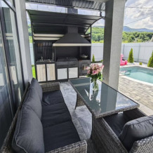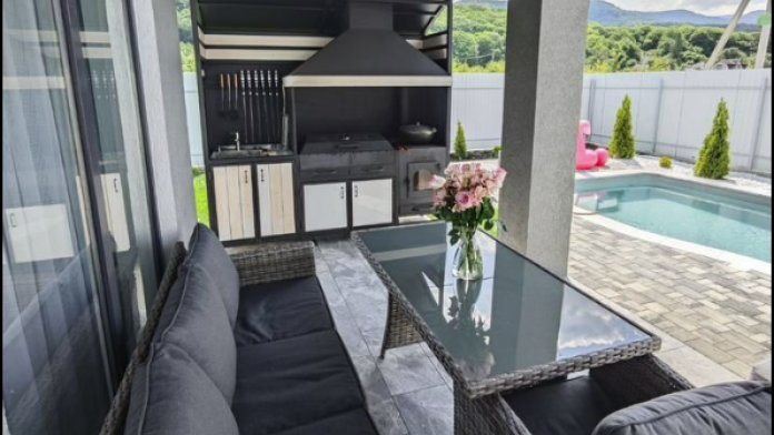 Удобная мангальная зона с уличной мебелью и всем необходимым (казан, шампуры, решетка, уголь и розжиг).