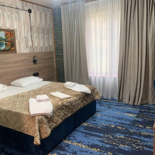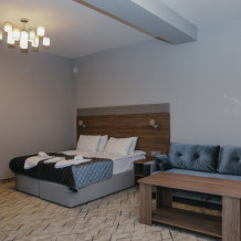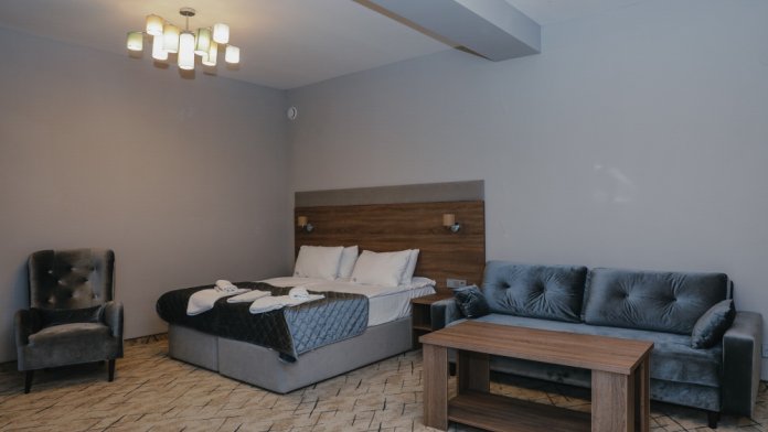 Комфортный однокомнатный номер с двуспальной кроватью, двухместным раскладным диваном и балконом.