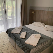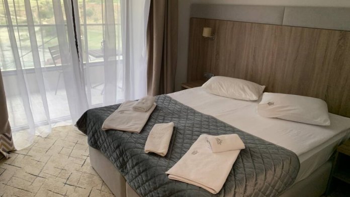 К услугам гостей отеля номера различных категорий, оснащенные всем необходимым для комфортного отдыха: функциональная мебель, современные ТВ, сплит-системы, холодильники и бесплатный Wi-Fi доступ в сеть интернет. Из окон номеров открываются завораживающие виды на горы и реку, шум которой создает неповторимую атмосферу.
