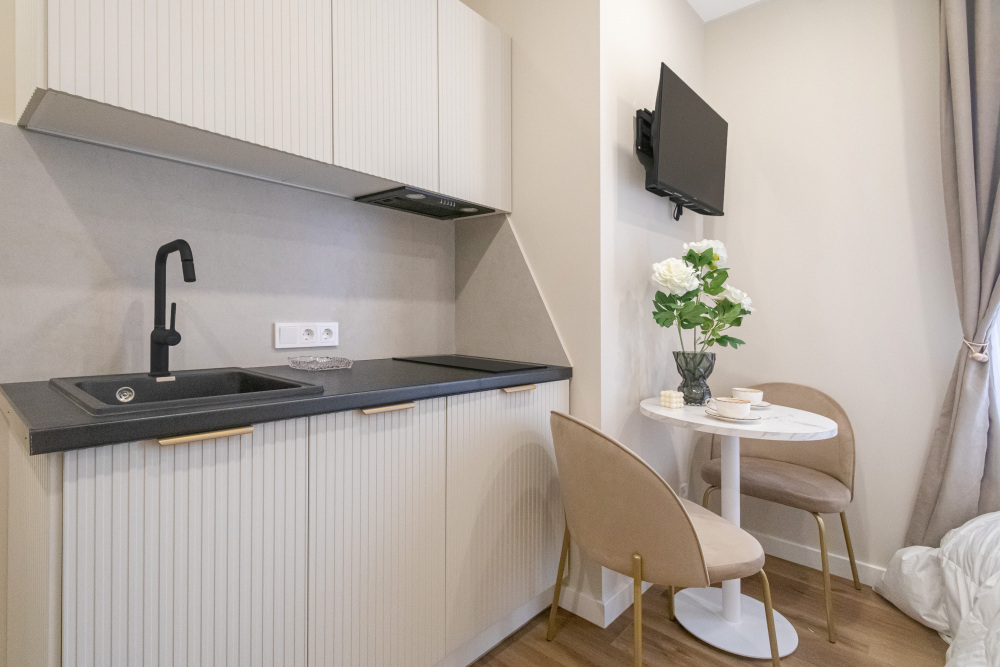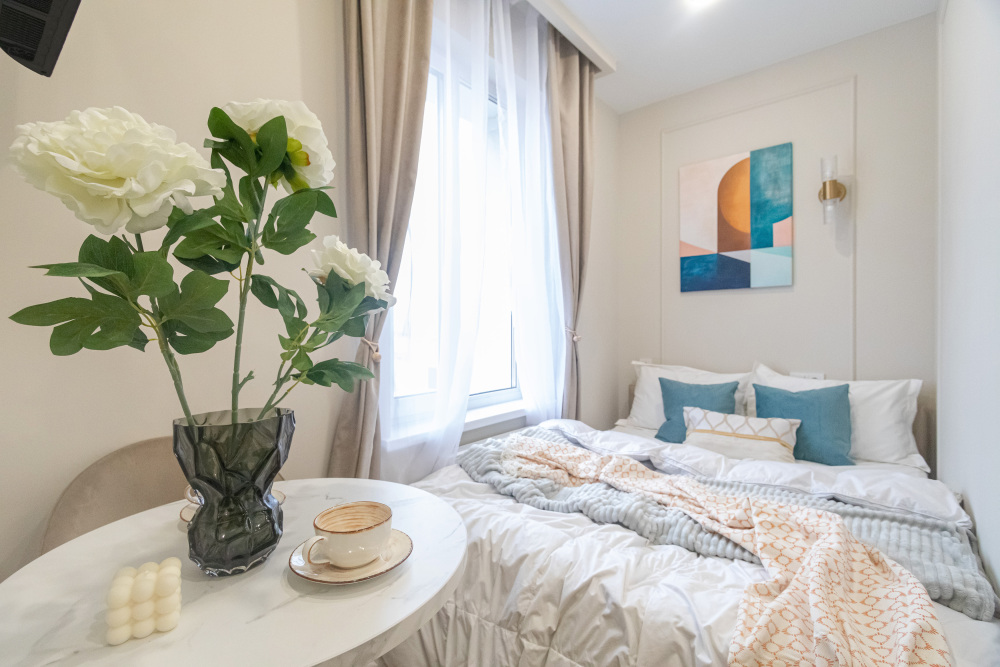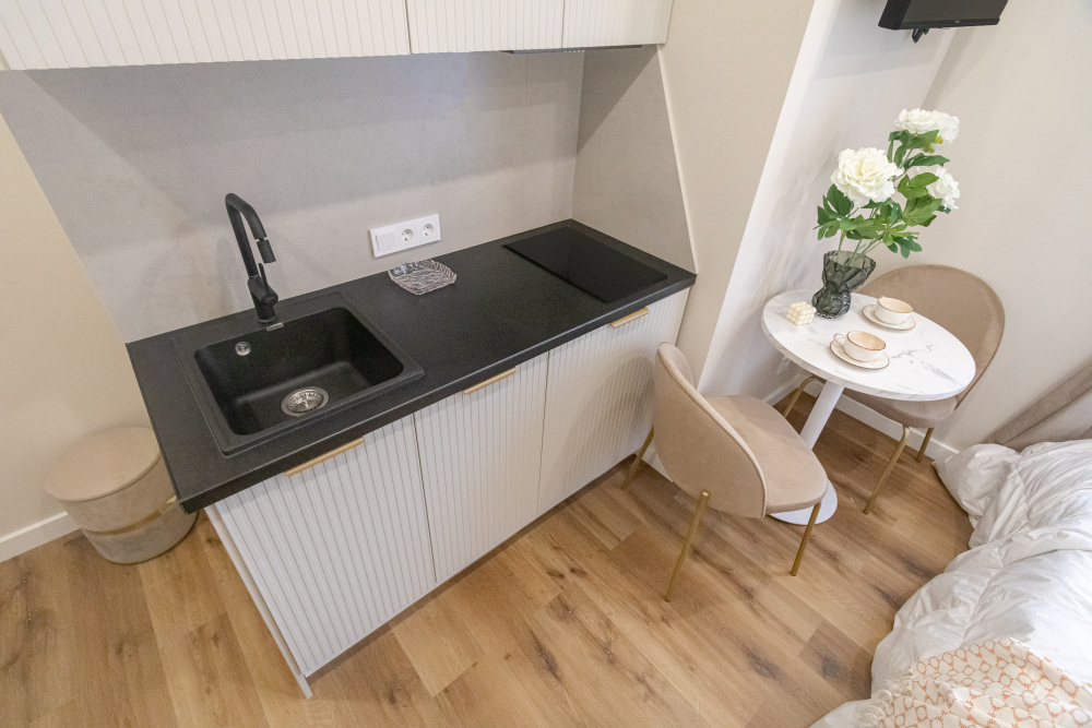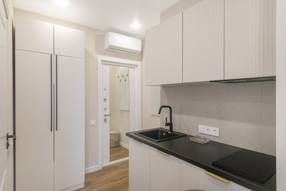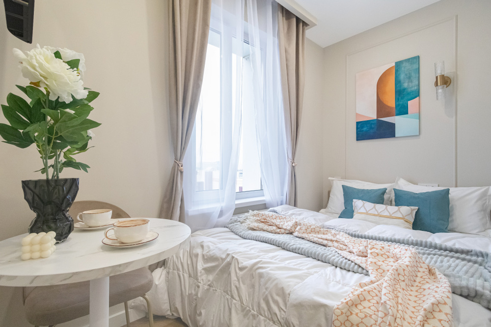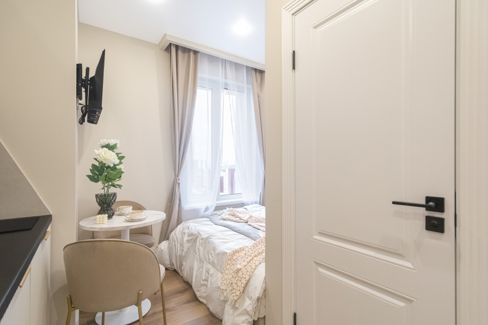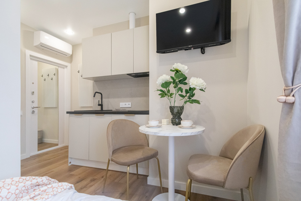 Современная студия в ЖК «М1 Сколково». Качественная дорогая мебель и техника. Интерьер продуман до мелочей. Апартаменты, откуда не хочется уезжать.