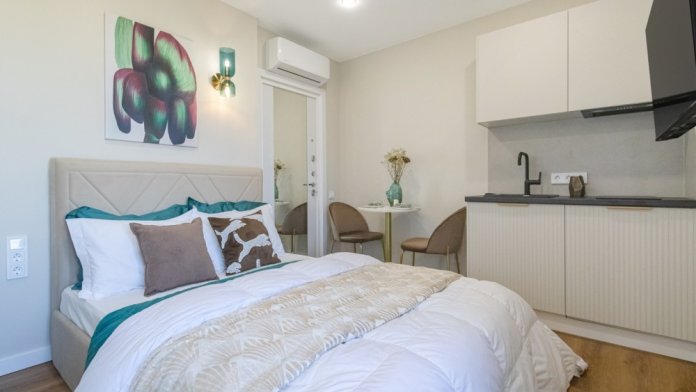 Современная студия в ЖК «М1 Сколково». Качественная дорогая мебель и техника. Интерьер продуман до мелочей. Апартаменты, откуда не хочется уезжать.