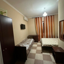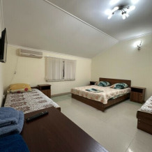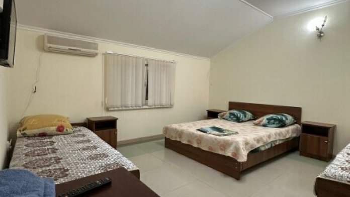 В номере:1 двуспальная и 2 односпальные кровати.