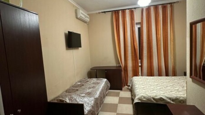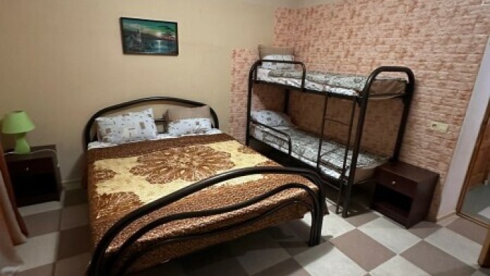В номере: 2 односпальные и 1 двухъярусная кровати.