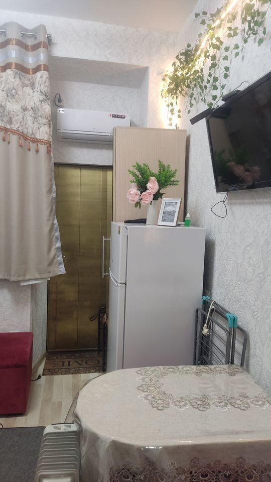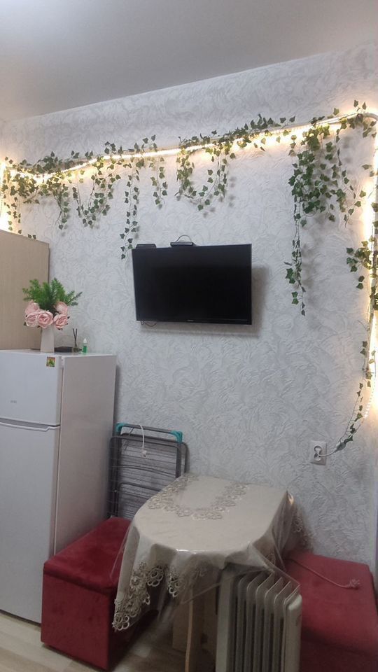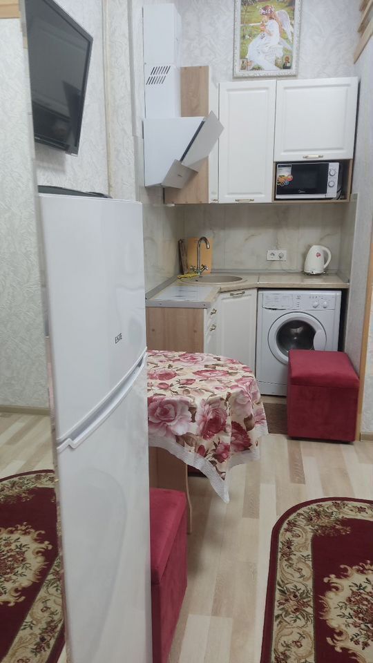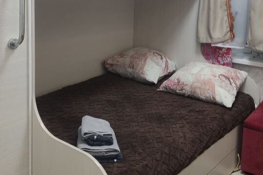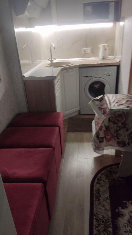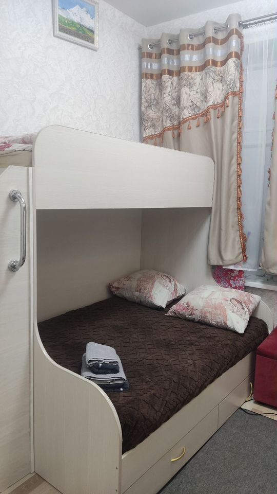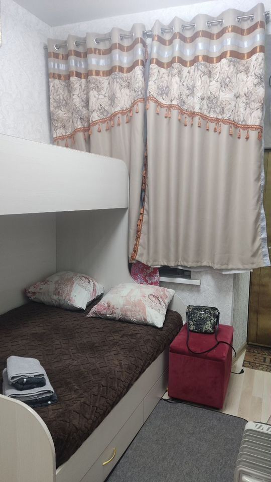 В квартире есть все необходимое для проживания. Кровать 3-спальная: внизу двойное спальное место, 190*140 см, верху одинарное спальное место 190*70 см. Также 4 пуфика сдвигаются в спальное место для ребёнка, 160х60 (в случае острой необходимости, а так пуфики выполняют роль стульев). Всегда чистое и выглаженное белье и полотенца. На выбор: евро или семейный спальный комплект. Гостевые тапочки. В квартире сделан новый евроремонт, полностью новая техника. Фен, посуда, микроволновка, холодильник, кондиционер, телевизор, интернет, душ, туалет, водонагреватель, электрический полотенцесушитель, туалетные принадлежности. Квартира небольшая, но уютная.