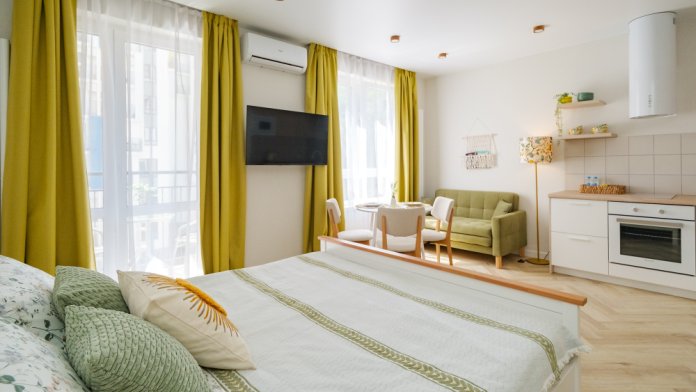 Почувствуйте себя как дома в нашей уютной студии, где продумана каждая деталь для Вашего незабываемого отдыха!