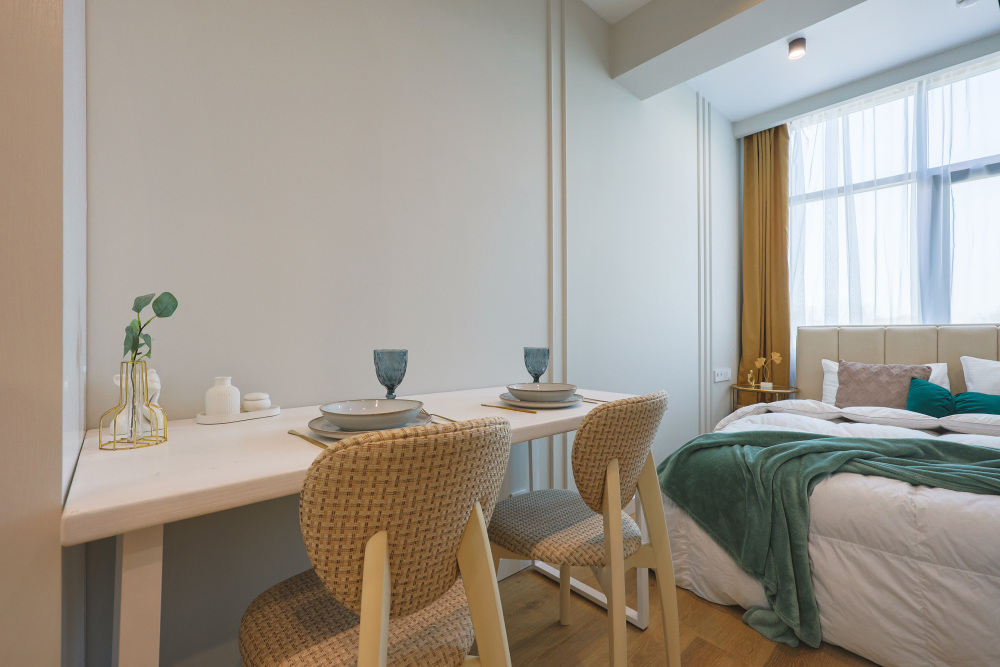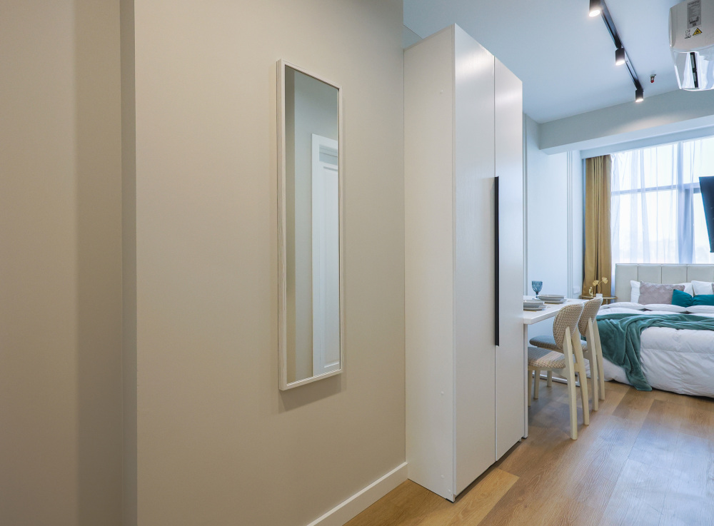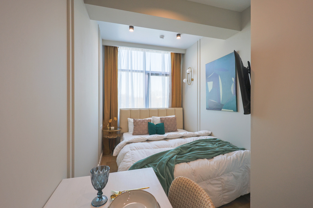 Большие окна. Качественная дорогая мебель и техника. Интерьер продуман до мелочей. Апартаменты, откуда не хочется уезжать.