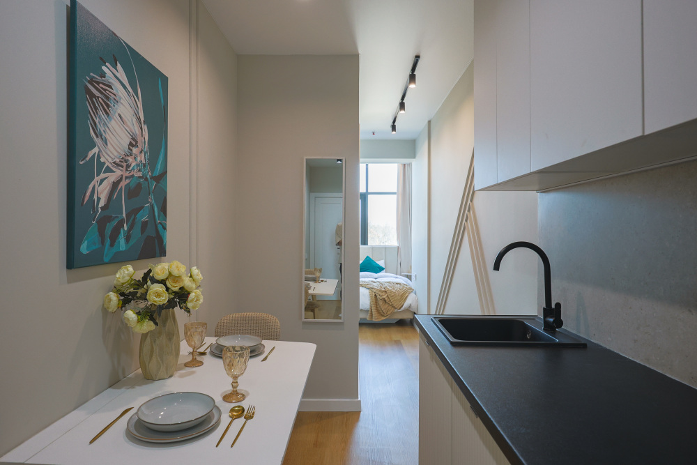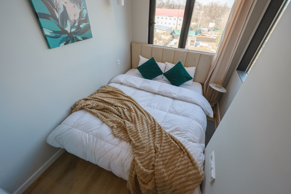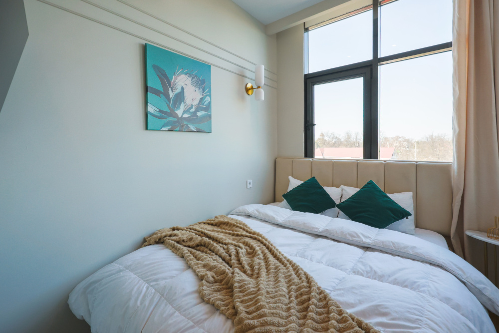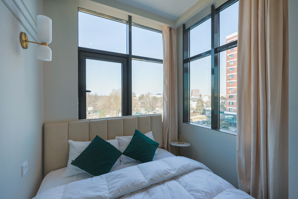 Большие окна. Качественная дорогая мебель и техника. Интерьер продуман до мелочей. Апартаменты, откуда не хочется уезжать.
