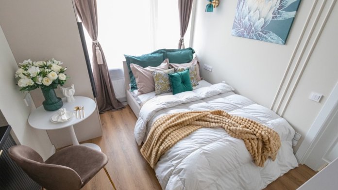Стильная уютная студия в ЖК «Мята». Большие окна. Качественная дорогая мебель и техника. Интерьер продуман до мелочей. Апартаменты, откуда не хочется уезжать. Метро «Хорошевская» (10 минут пешком).