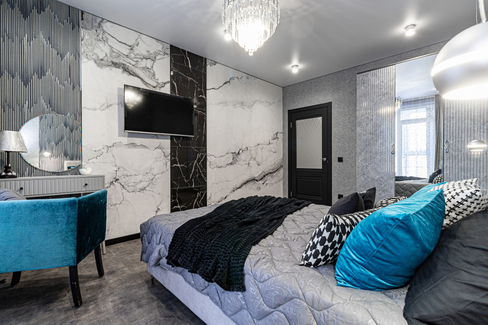 Роскошная обстановка с дизайнерским интерьером и премиальной отделкой.