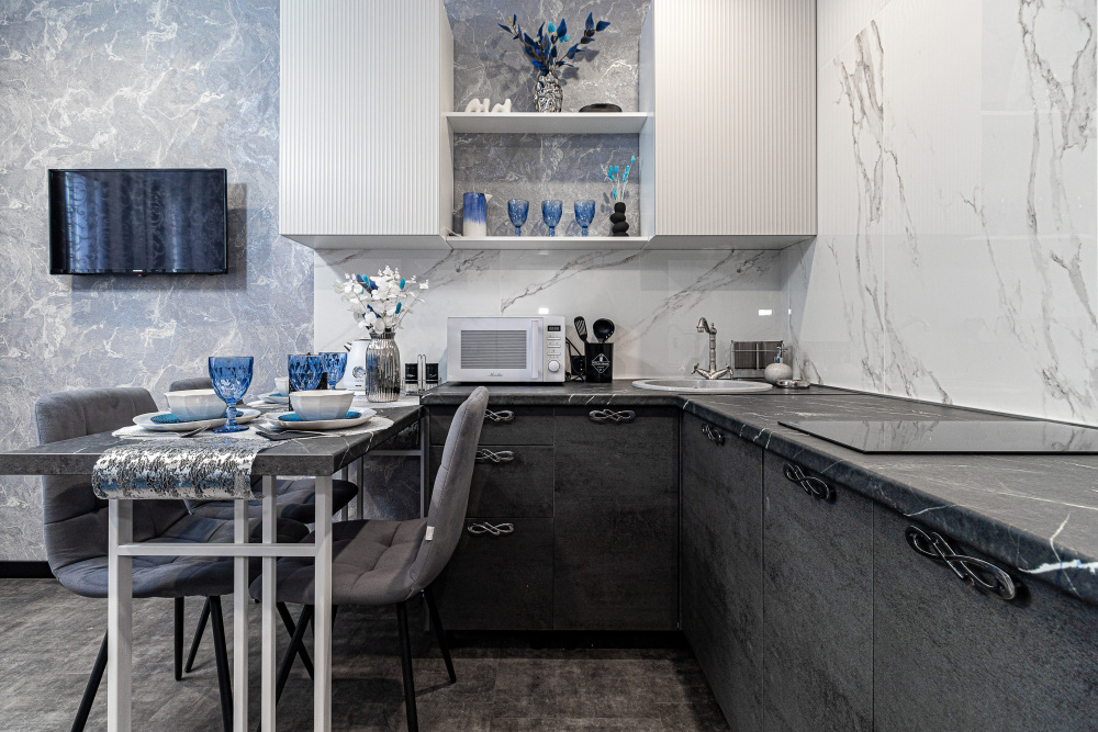 Полностью оборудованная кухня с профессиональной техникой и изысканной посудой.