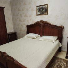 В квартире большая двуспальная кровать в спальне и двуспальный диван в зале. Зал оборудован полноценной кухней. Кондиционеры в зале и спальне.
